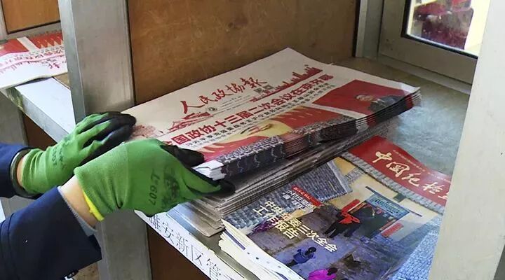 3月4日11点刚过,河北雄安容城邮政分公司的投递员已经把刊载有全国政协十三届二次会议开幕消息的京版报纸送到了河北雄安新区宣传中心。