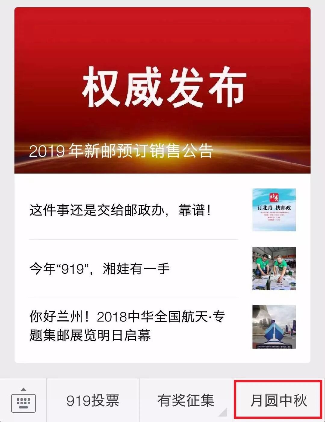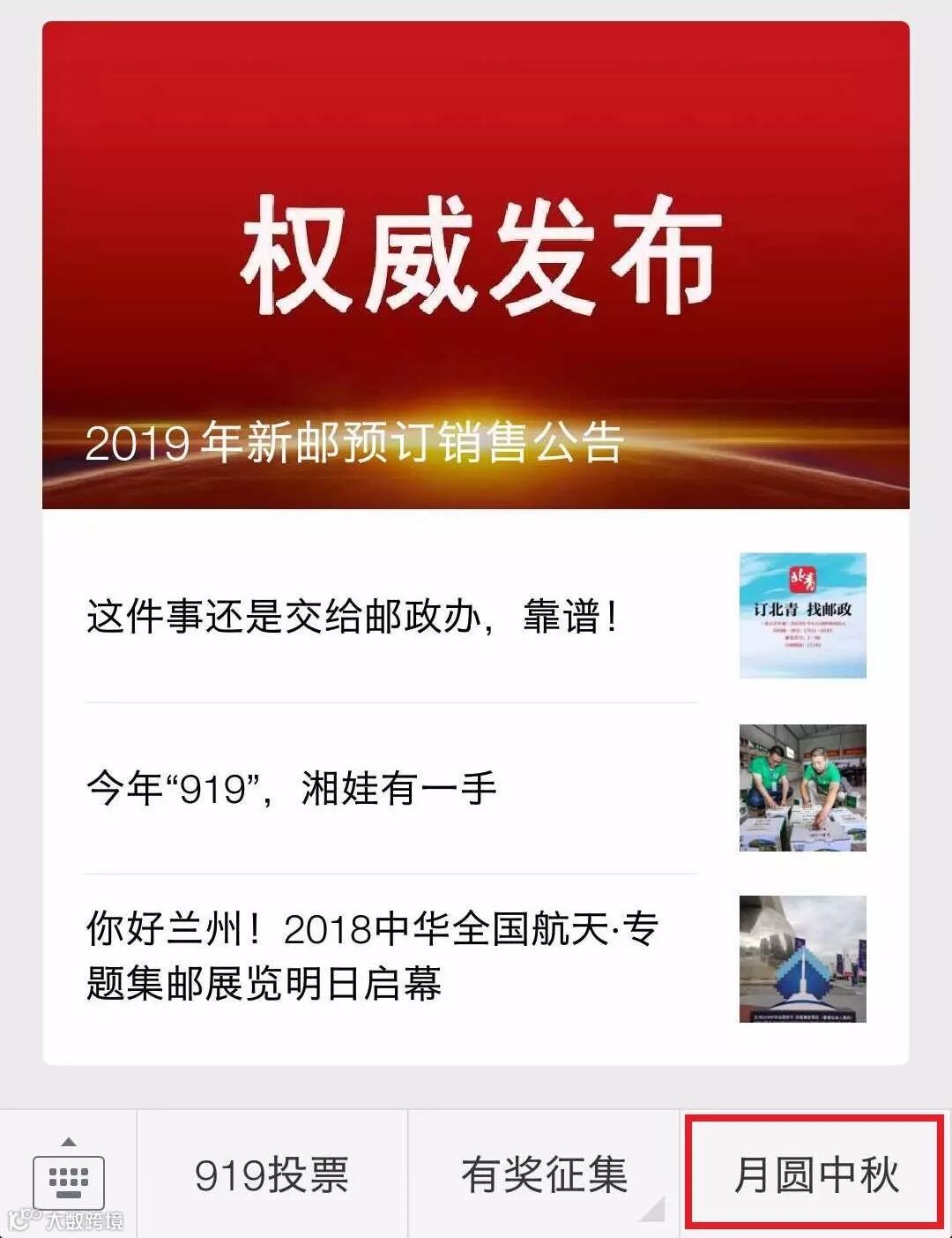 1、关注中国邮政微信,点击“月圆中秋”自定义菜单,观看直播。