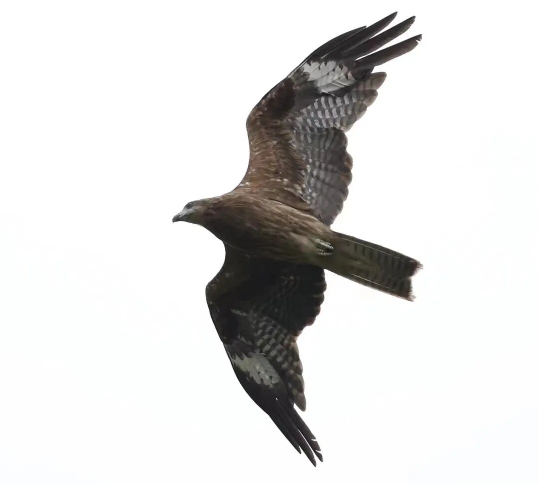黑鸢两翼下的白斑是它的标志,近距离观看时,才发现借助气流上升的它,飞行技巧十分精湛,原来尾翼就是它的舵,尾翼左右两半会交替摆动,它就能轻松的转换方向。