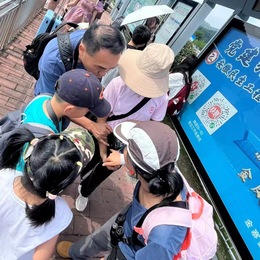 这边还没看够家燕喂食,马路对面就听着一阵叽叽喳喳、激烈的鸟鸣声,军老师赶忙跑过去,发现地上一只落巢的黄臀鹎雏鸟,鸟爸鸟妈着急地飞上飞下,把人的注意力往它们的方向引去,怕他们会伤害到雏鸟。侦察了下环境,军老师迅速捧起小鸟,将它放在树杈高处,小鸟很紧张,飞落下来2、3次,但最后一次终于把它成功地放了上去,军老师示意大家往后退,告诉我们一会亲鸟会衔来食物给宝宝,宝宝有体力后也会抓着树皮回到高处的巢里。