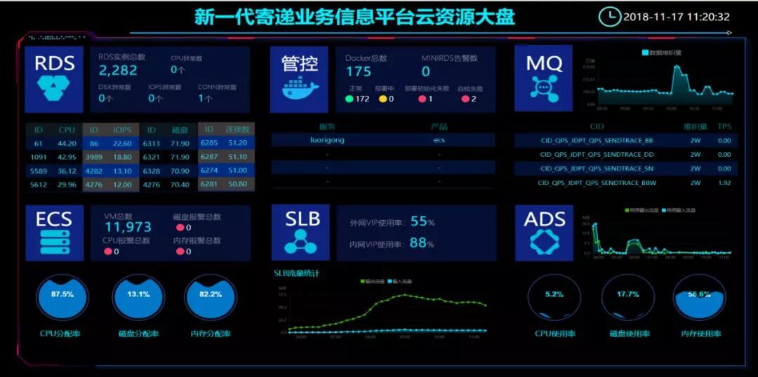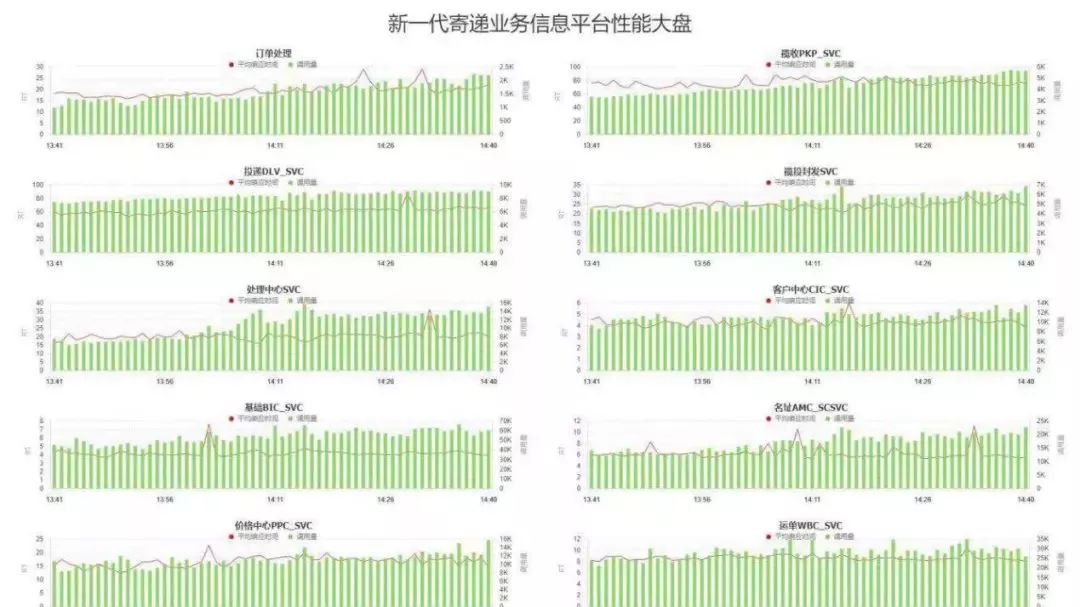 同时,新一代寄递平台还建立了云监控可视化平台,通过监控大盘实时掌握平台运行情况,做到心中有数。就在“双11”当天下午4:30左右,保障组通过监控平台发现计费服务调用量过大导致资源紧缺,立即对平台进行了在线扩容,在分钟级时效上缓解了平台压力,防止了对一线生产的影响。