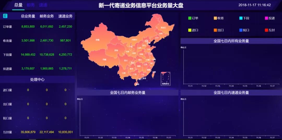 今年“双11”,新一代寄递平台的优势和先进性初步得到验证,邮政IT人的战斗力充分体现,为邮政寄递业务的发展打下了很好的技术基础!
