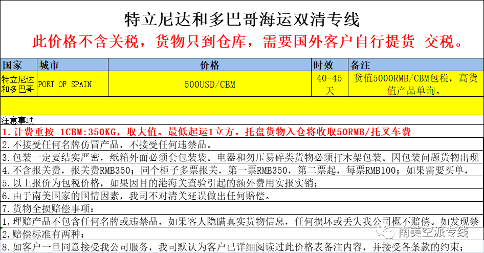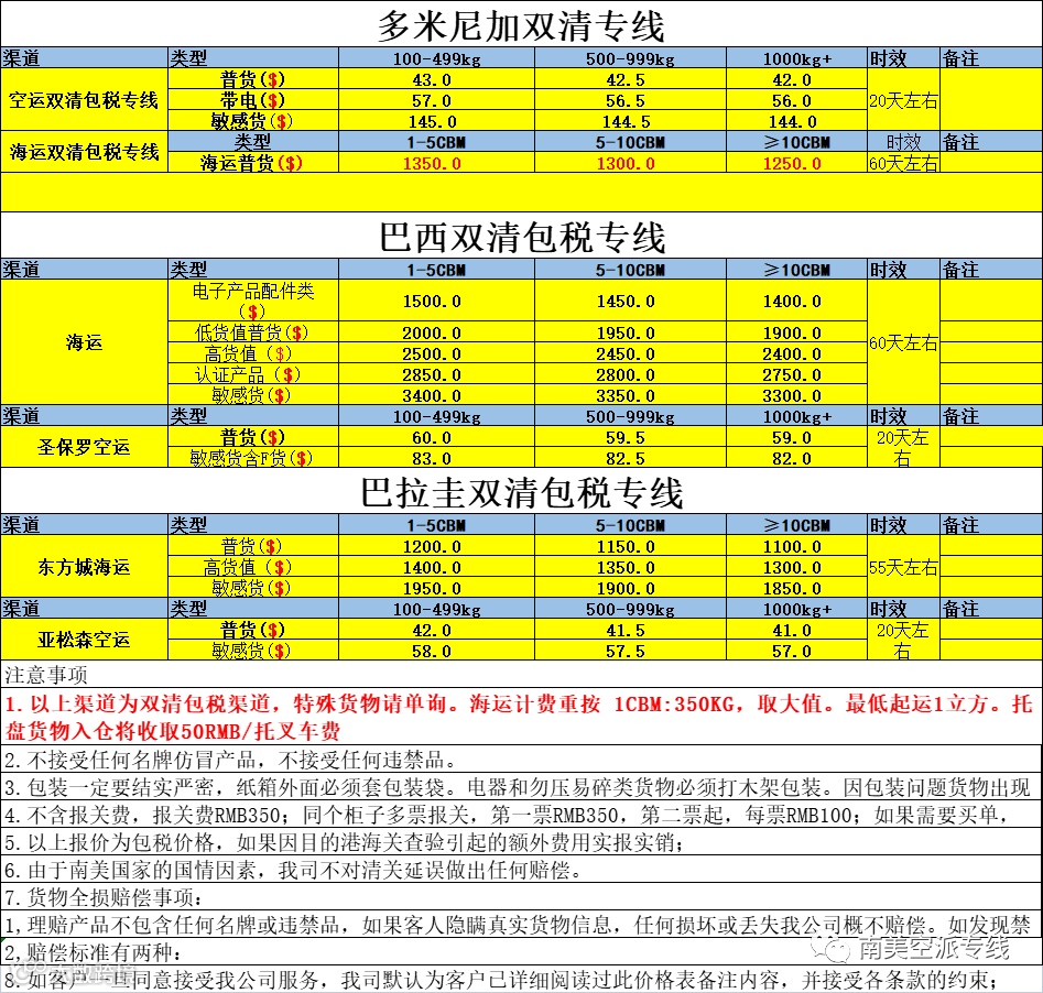 新鲜出炉的南美双清包税专线,记得关注哦!!!