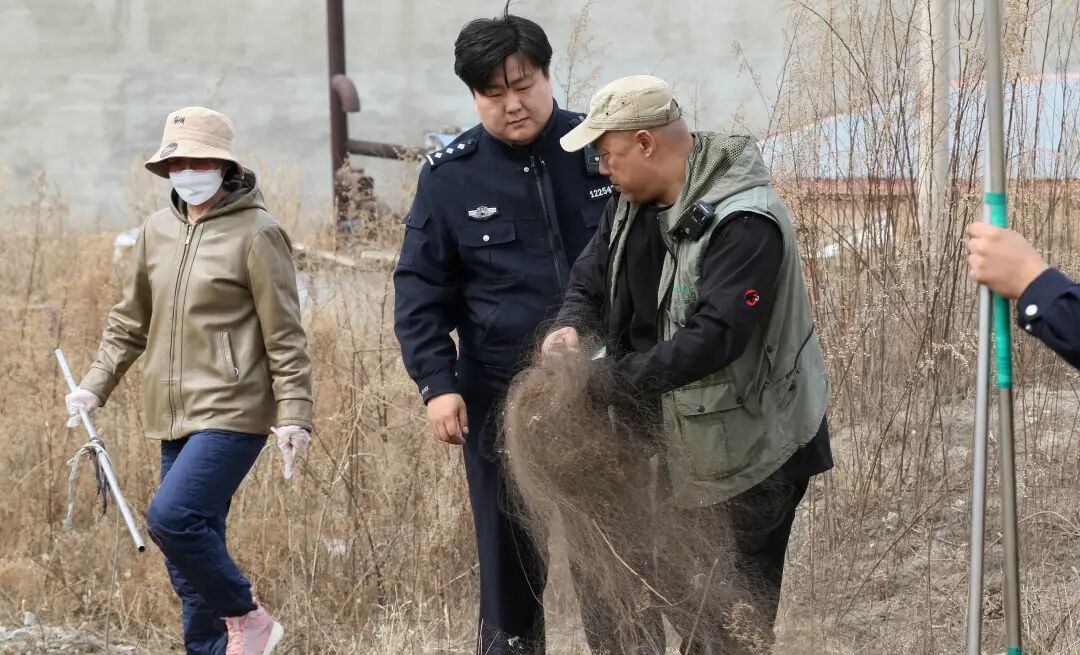 志愿者在肇东市昌五镇附近田间发现捕鸟网