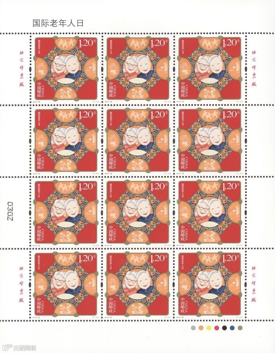 中国邮政定于2018年10月1日发行《国际老年人日》纪念邮票1套1枚,面值1.20元。