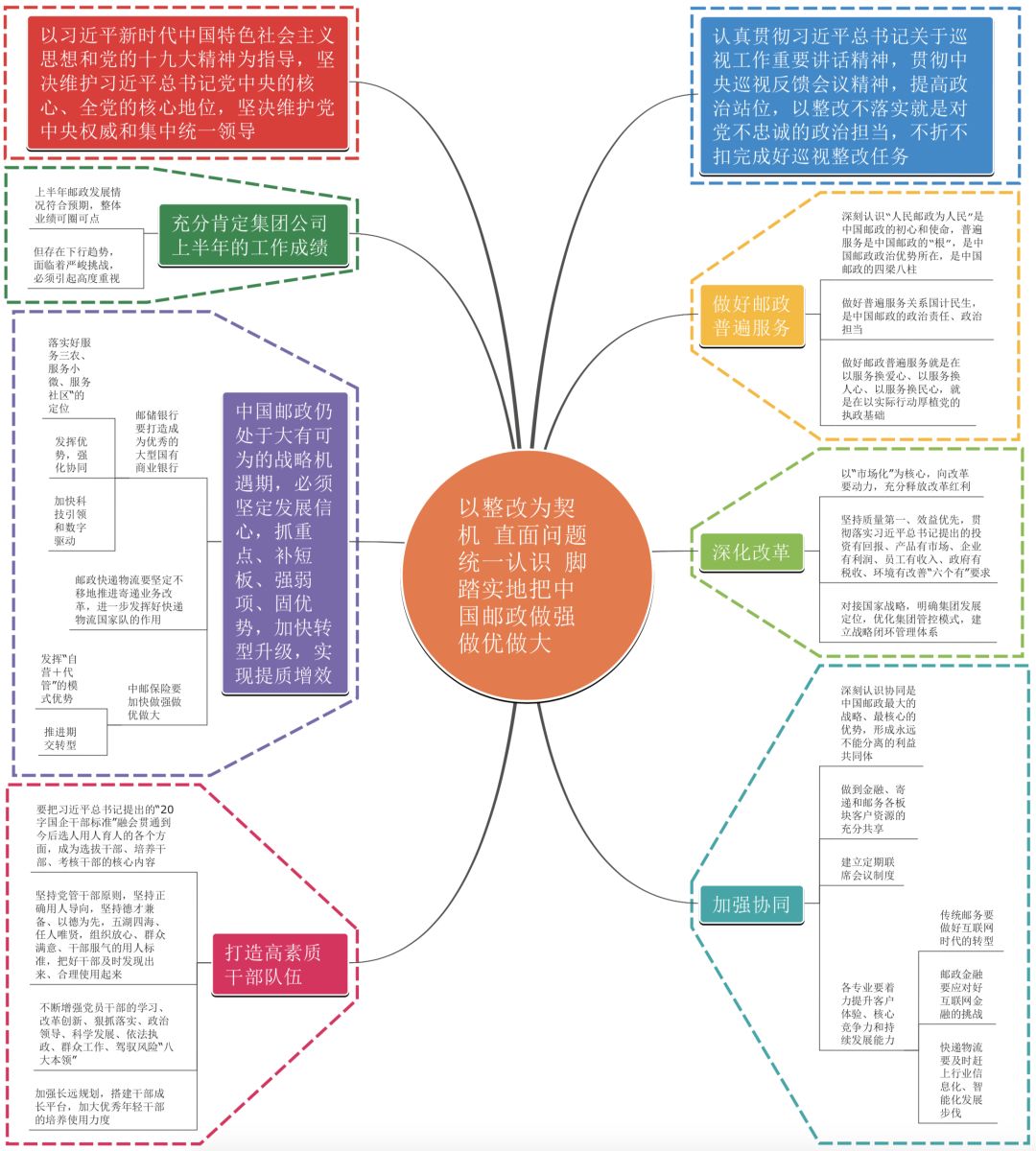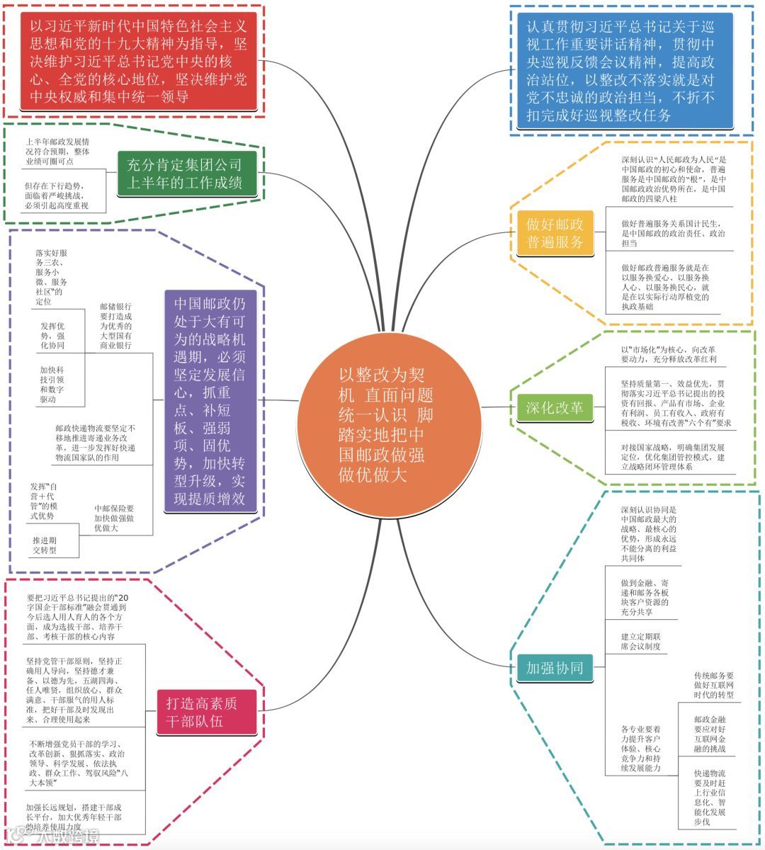 2018年全国邮政工作座谈会于8月23-24日在京举行,会后,各地邮政积极传达学习并贯彻落实会议精神。为有助于广大邮政干部职工更好地领会会议精神,我们对相关会议报道进行了归纳梳理,制成如下一张思维导图,供大家在学习中参考。