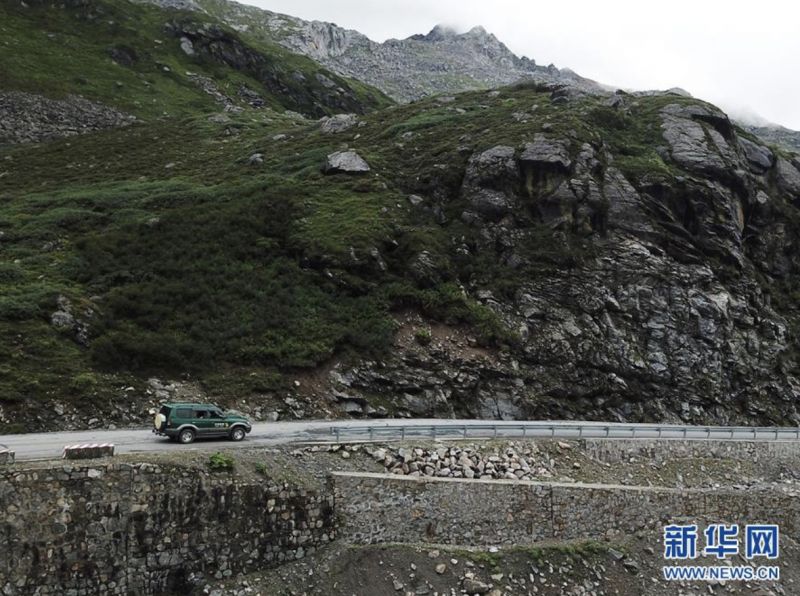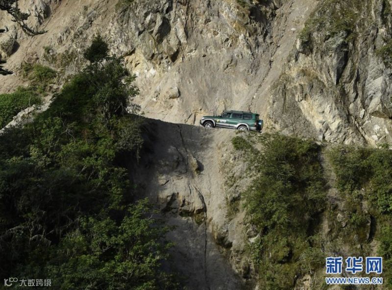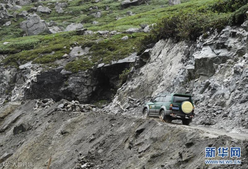 在崎岖陡峭的山路上,亚林驾驶邮车由县城赶往乃堆拉哨所投递、交换邮件。