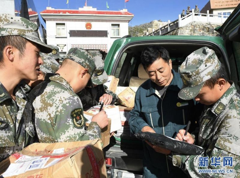 亚林为驻守在乃堆拉哨所的战士们分发邮包。