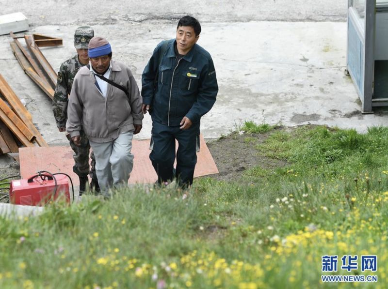 亚林在边防战士的陪同下和印方邮件交换人员(中)一同前往位于中印国境线中国一侧的国际邮件交换厅。