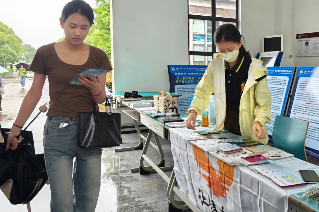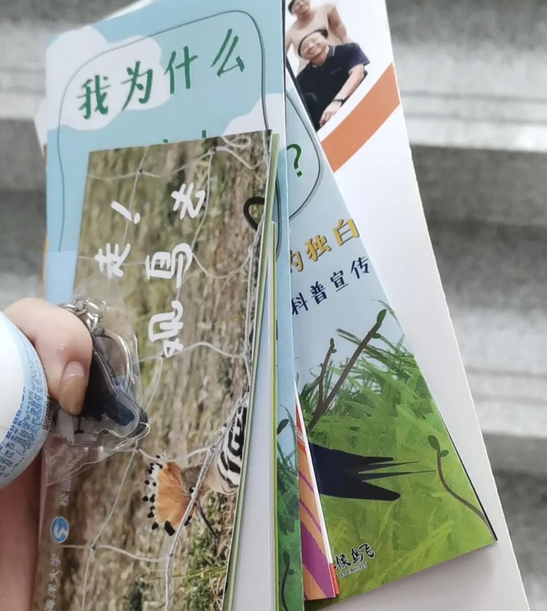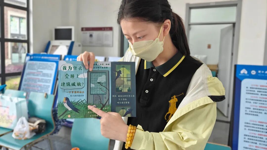 2023年6月8日,世界海洋日之即,让候鸟飞于浙江海洋大学参与节日摆摊展出,进行了“防鸟撞”校园科普宣传。浙江海洋大学海翎野鸟协会的多位观鸟爱好者学生,也在一旁的摊位进行互动式展出,共同向校内学生和教职工科普宣传防鸟撞的重要性。共计分发约200张防鸟撞折页、150张其他鸟类保护折页,义卖筹款120元,学生们在课余时间争相答题,科普宣传效果非常好。