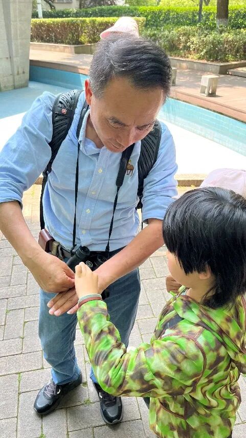 到了休息时间,大家找了个树荫纷纷坐下,同时,军老师开启了他的鸟类救助小课堂,大小朋友们提出很多有趣问题,小鸟友们回答问题也很专业。