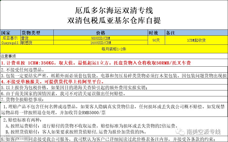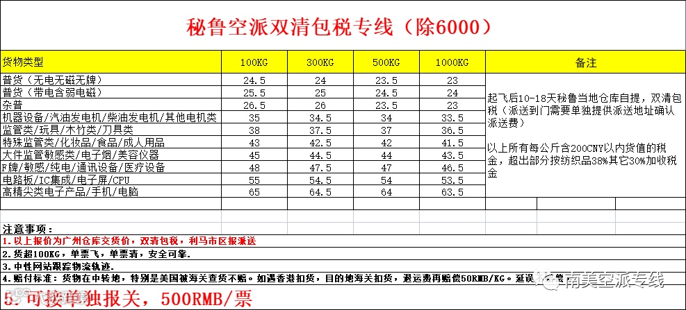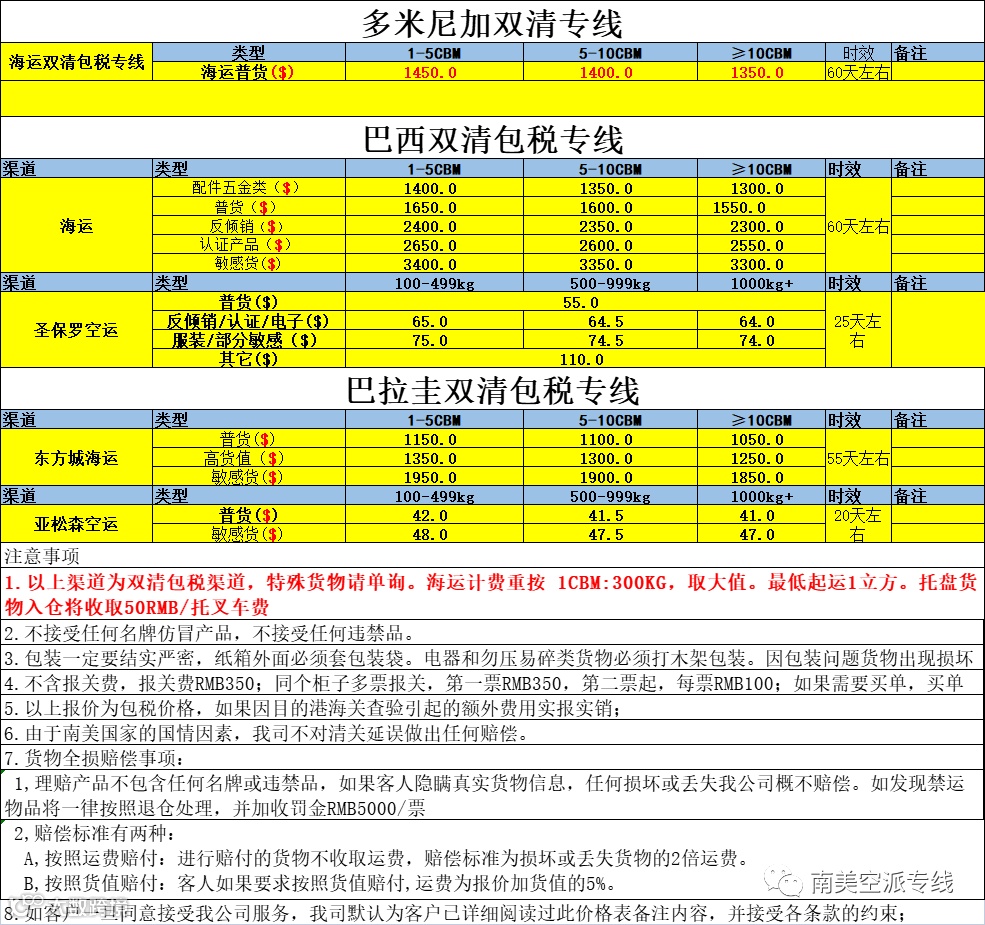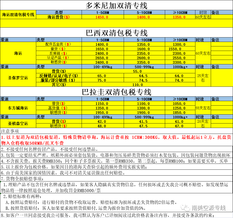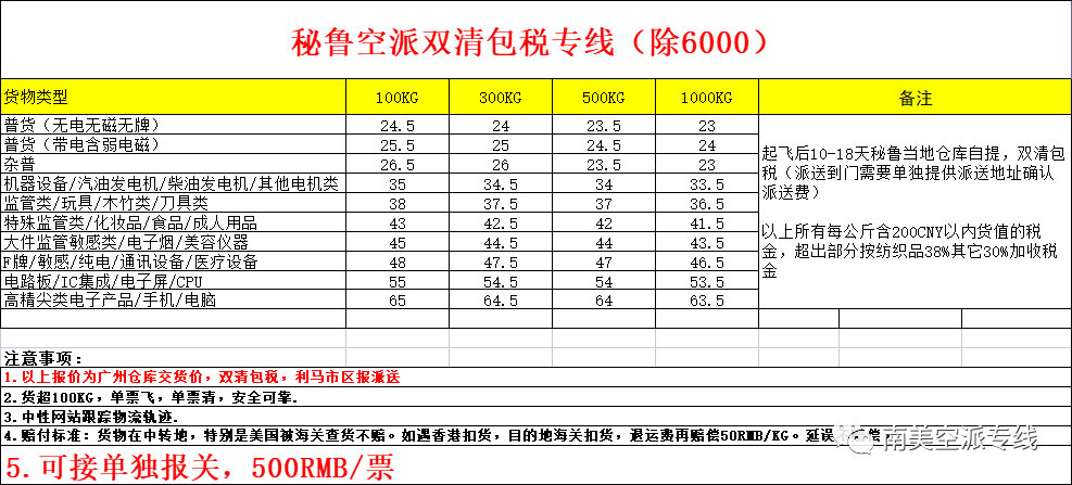 新鲜出炉的南美双清包税专线,记得关注哦!!!