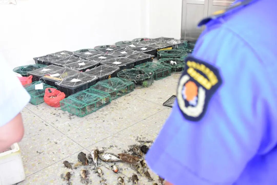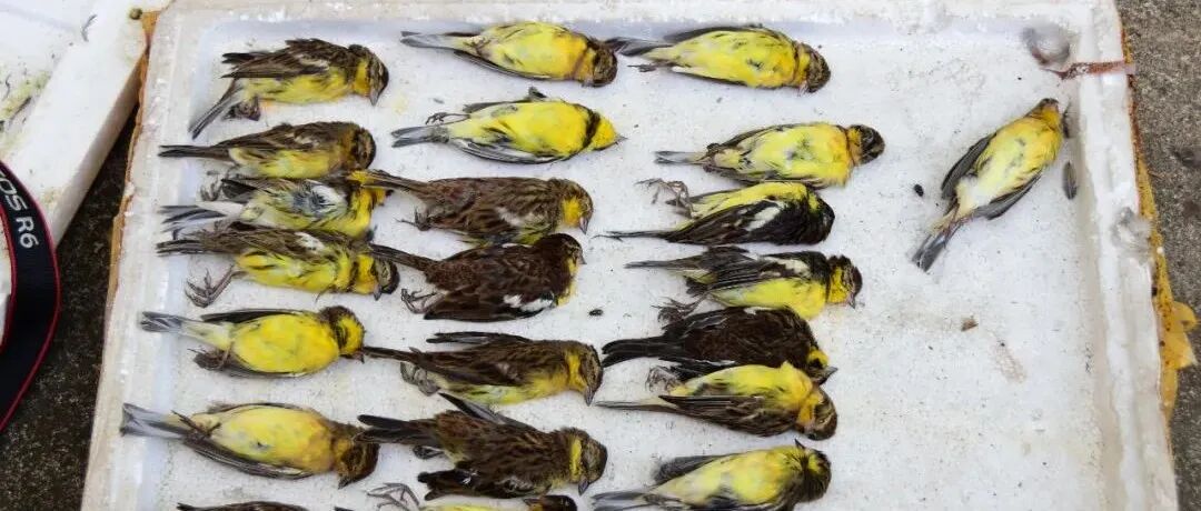志愿者在广东省茂名市电白区岭门镇,发现1个非法收购窝点,举报后协助相关部门救助收缴野生动物活体死体共607只,其中包括国家一级保护动物黄胸鹀死体23只、国家二级保护动物80只。在此我们提醒大家,拒绝非法野生动物交易,共同营造保护野生动物的良好社会氛围,需要你我共同行动!