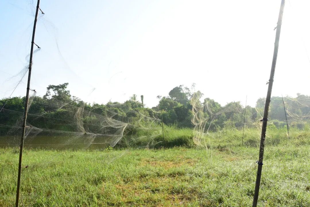 下午在广东省阳江市阳东区那龙和和北惯河沿途,发现超过8处架设捕鸟网的专业捕猎点约20张捕鸟网。