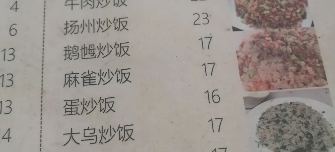 (写有麻雀炒饭的菜单)