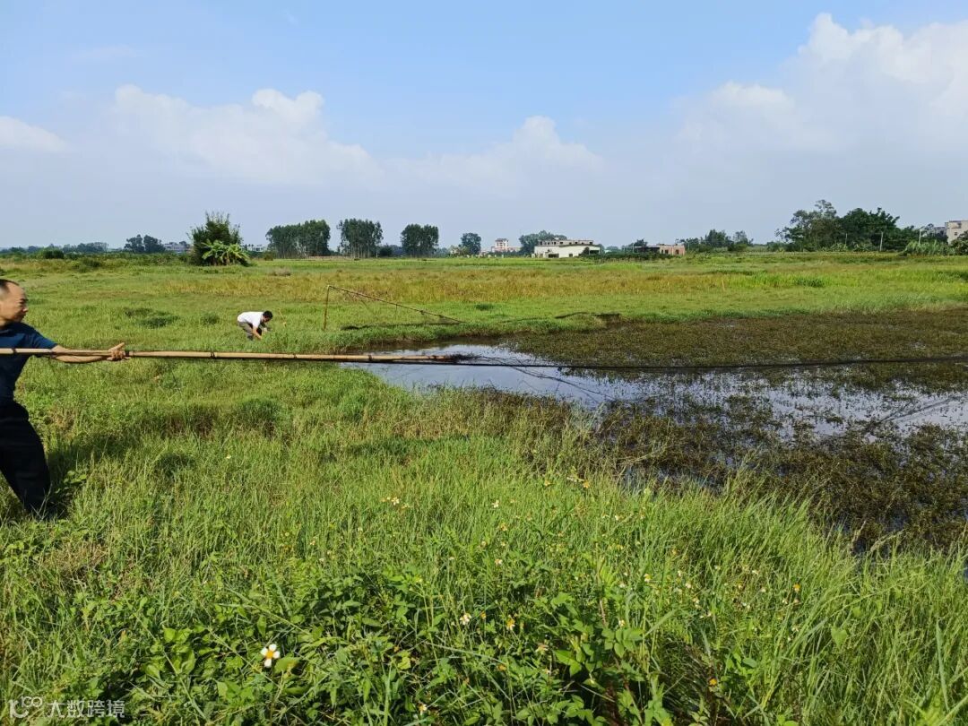 在广东省阳江阳东区那龙镇一鱼塘发现1张捕鸟网,反馈给相关部门拆除。