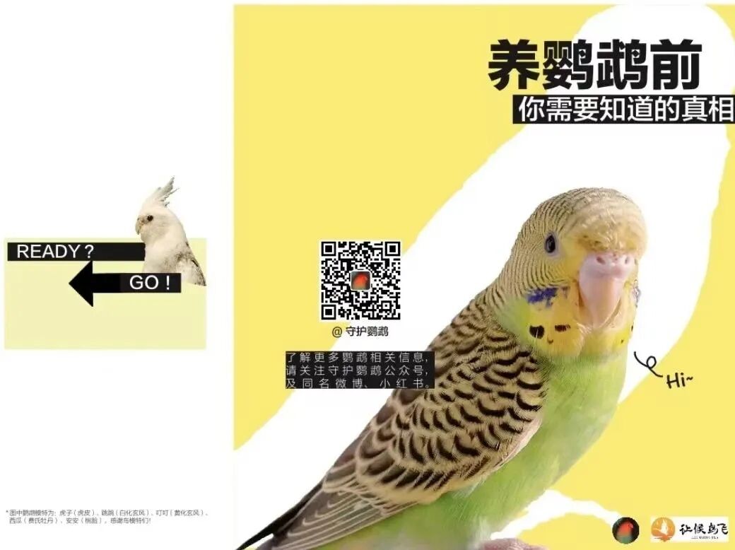 神气的虎子自此常常现身我们的宣传物料,除了是宣传折页的封面模特,牠还“出演”了救助科普视频“捡到鹦鹉怎么办”,亲身示范“啊,我晕了”的桥段。另外,救助板块海报也有牠的身影,成功为自己和其他同病相怜的小鹦鹉代言!虎子算得上是守护鹦鹉的一位小小的大明星啦!