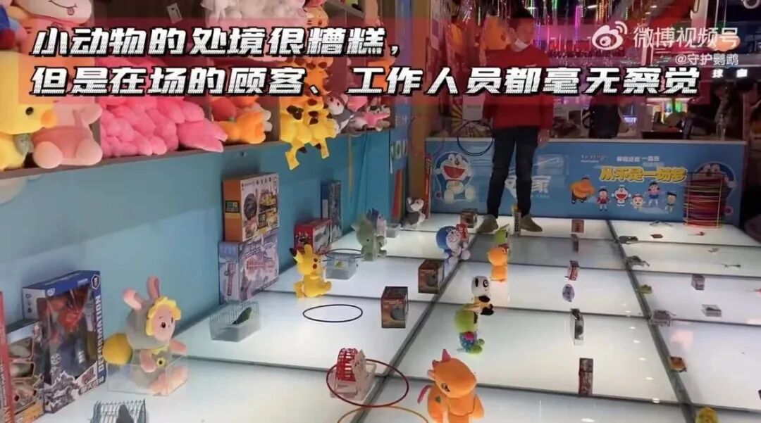 去年12月底,志愿者去到现场成功救出了5只情况不好的鹦鹉。有关部门也曾多次责令撤出,但商场却依旧执着于活体展示。甚至还引进了活体娃娃机的游艺设备,引起了网络热议。
