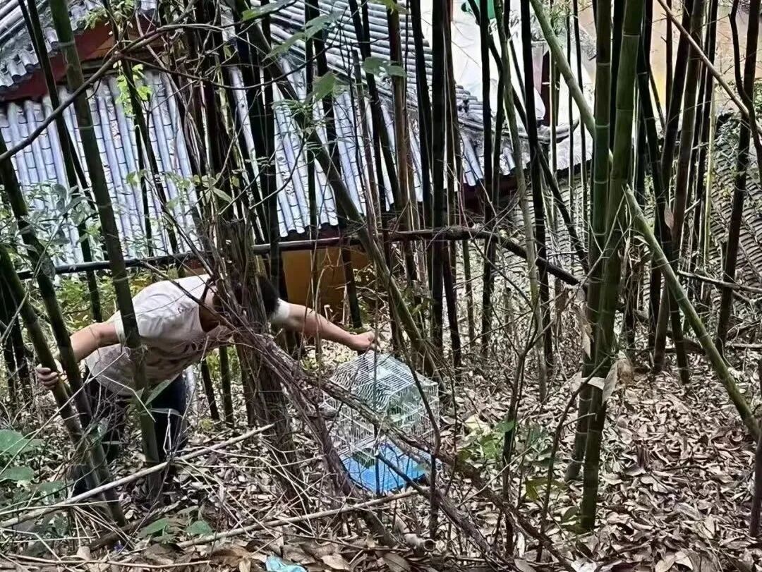 10月3日,有网友在杭州湘湖景区莲华寺山顶上发现有人疑似放生鹦鹉、文鸟等家养鸟将近100只。由于家养鸟在野外无法生存,10月4日上午,我们到达现场开展了救援。经过几位志愿者一天的蹲守,一共捕获了9只白腰文鸟(十姐妹)和1只芦丁鸡。