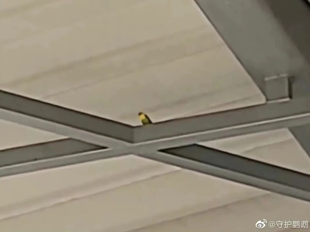 11月3日,我们收到网友求助,佛山南海映月湖环宇城内有一只逃逸的虎皮鹦鹉,已经在商场游荡了四天。志愿者去到现场尝试引诱但不见效。后来通过佛山伴侣动物保护协会的协助联络,商场和商户才派人进行了抓捕。