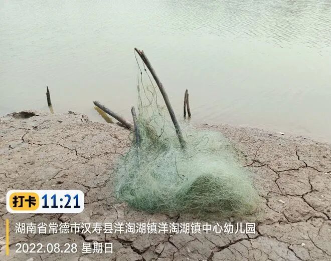 禁渔期内私自下网捕鱼属于违法行为,志愿者发现后及时将渔网销毁