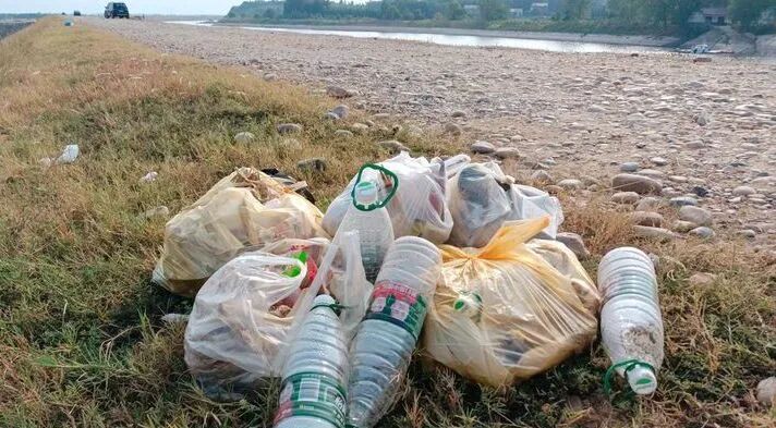 志愿者团队边巡护边清理河边游客留下的垃圾,保护环境还是要从你我做起!