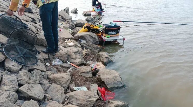 志愿者来到常德市汉寿县岩汪湖镇的撇洪河巡护,发现众多钓鱼人留下的塑料垃圾,在通知了相关部门后,将垃圾全部清理。