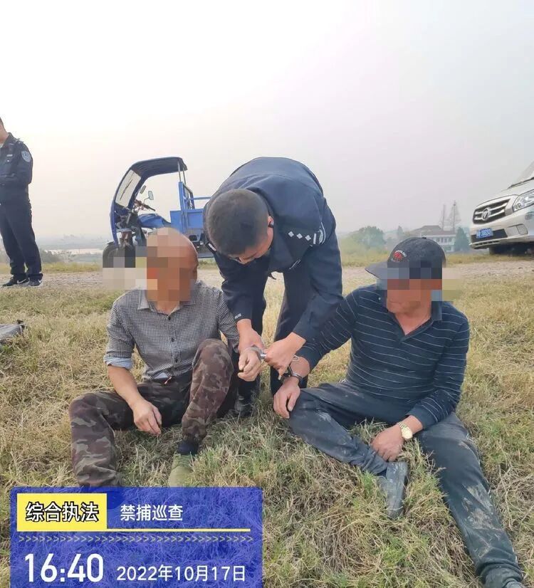当天巡护期间,志愿者还在该区域发现两名电鱼者,在向当地执法单位举报后,执法人员迅速组队巡视,并在次日现场抓获了这两个电鱼者。