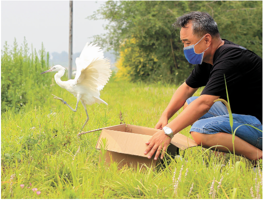 2022年5月,志愿者在石家庄元氏县的槐河边上,先后捡到了两只受了伤且身体虚弱的国家三有保护鸟类大白鹭。经过3个月的精心饲养,两只大白鹭已可以自主进食,经野化训练后,评估达到放飞标准。8月7日上午,志愿者对大白鹭进行了放飞。