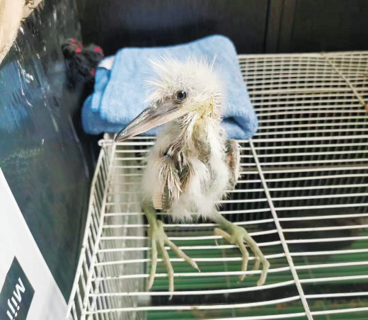 期间,志愿者在岸边发现一只受伤的国家三有保护鸟类大白鹭,疑似是被弹弓所伤。该大白鹭的嘴和腿均已断裂,伤势严重,志愿者将其救起后,及时送往了当地的救助站进行救治。