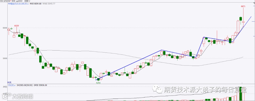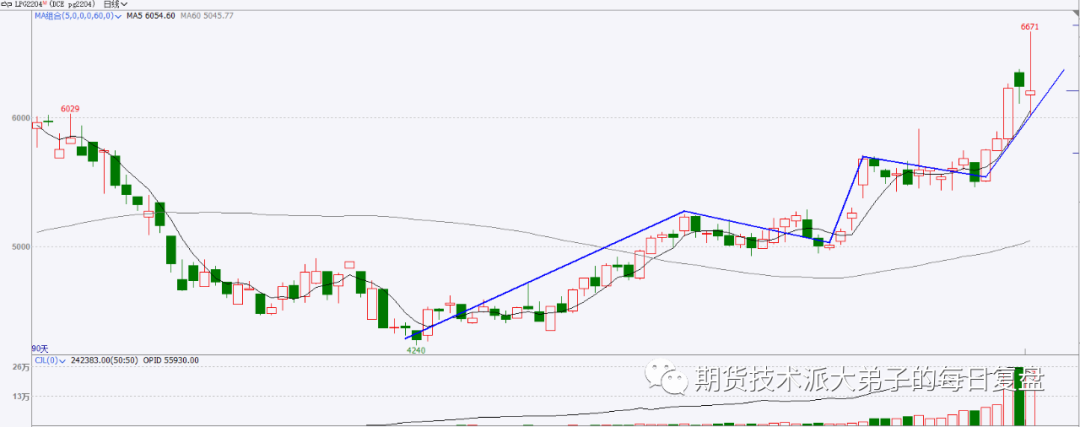 LPG趋势向上,今日冲高回落,但跟进多单为主。