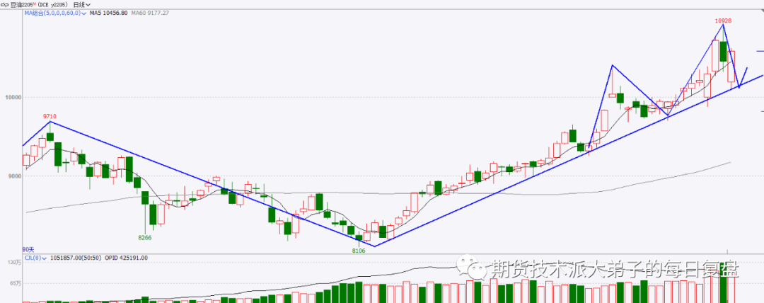 豆粕、菜粕当前回撤,但趋势依旧向上,企稳接多单。