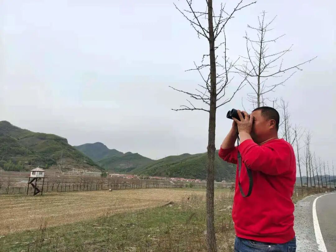 志愿者团队巡护本溪市猎隼繁殖地,观察今年该地区猎隼的繁殖情况。