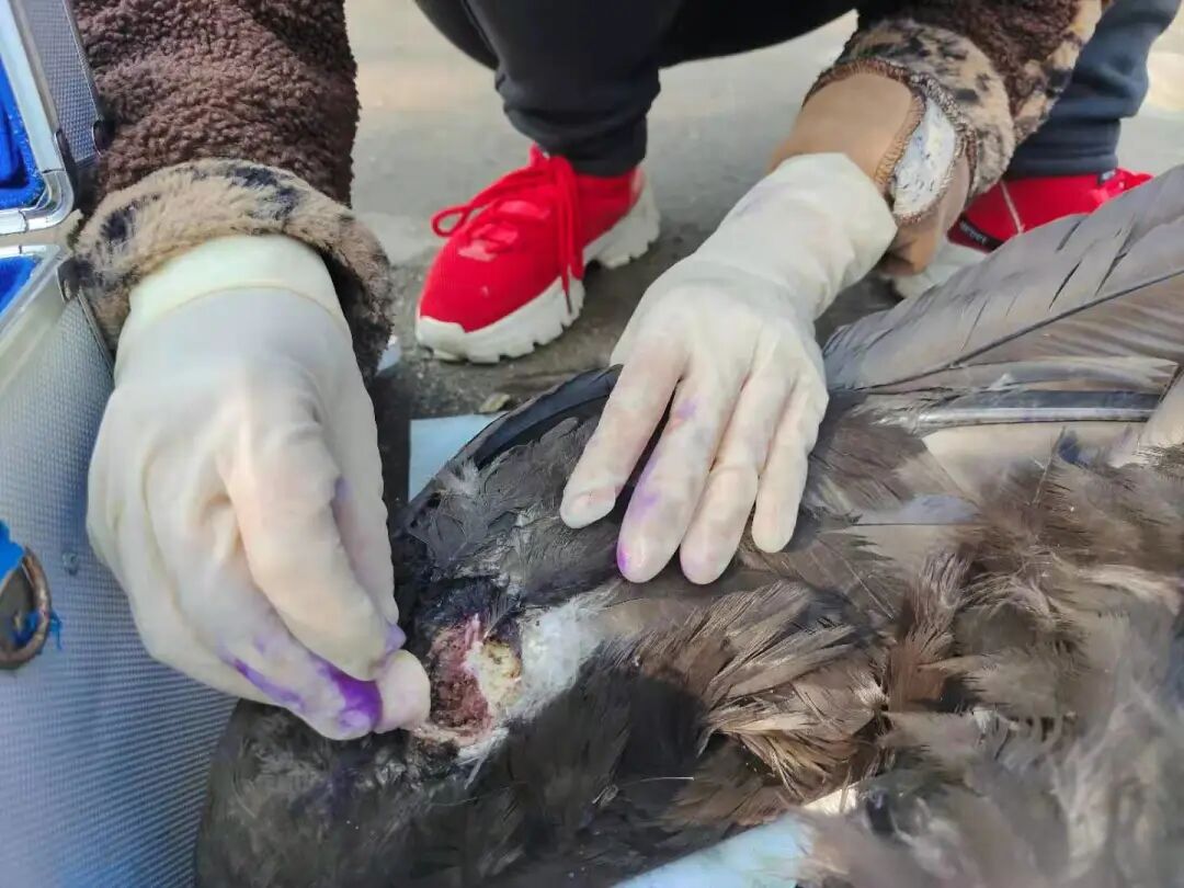 在辽宁省本溪市摩天岭镇,志愿者巡护期间发现一只受伤的秃鹫。该秃鹫伤势严重翅膀骨折,且腿部的陈旧伤已导致牠肌肉萎缩。经过志愿者多日的救治,目前秃鹫正在慢慢康复中,期待牠早日恢复健康,顺利回归自然。