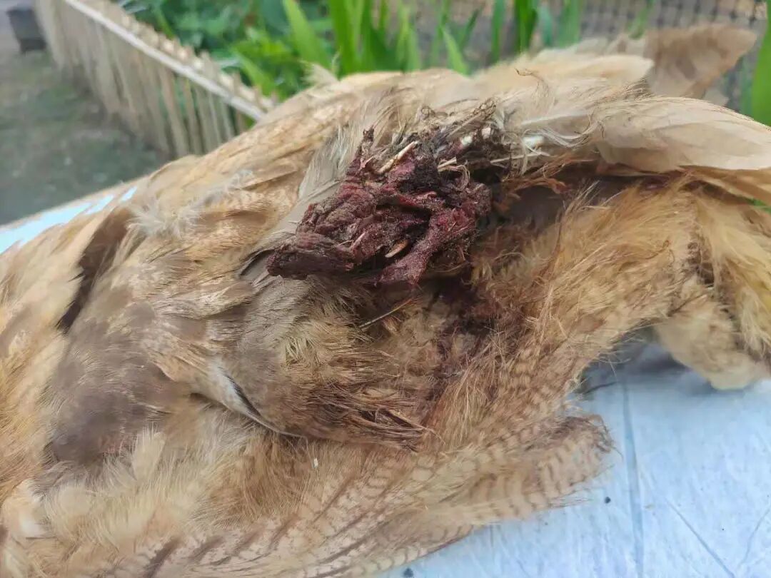 志愿者接到本溪市野保站的来电,一只雕鸮被火车撞击后,伤势严重。志愿者随即赶赴现场,经检查,发现该雕鸮一侧的翅膀已被火车压碎,腿也断了一条。然而鸟儿非常坚强,即使受了如此重伤,依然顽强的支撑着。志愿者立刻将牠带回了护鸟基地进行救治,无奈伤势太重,加上流血过多,雕鸮最终还是离开了这个世界。