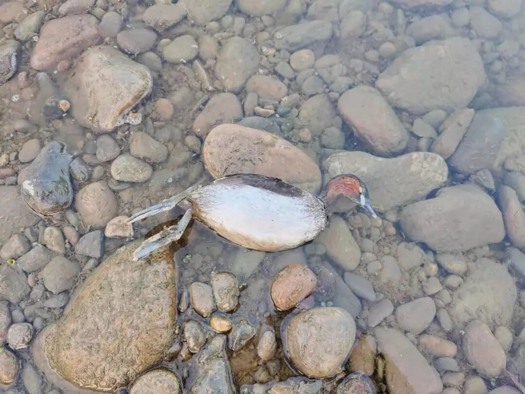 志愿者巡护发现一只自然死亡的小鸊鹈