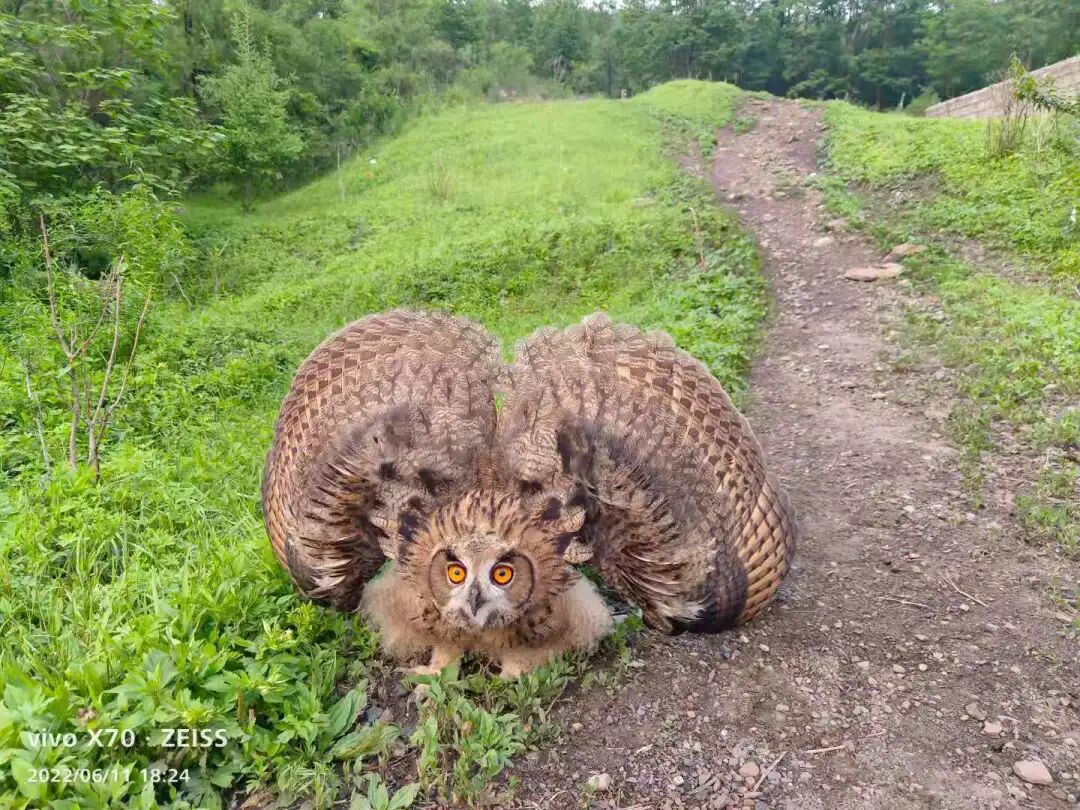 志愿者来到本溪市的雕鸮繁殖地进行巡护,观察今年雕鸮的繁殖情况。目前,成年雕鸮们已经成功繁育,雏鸟们也在慢慢长大中。