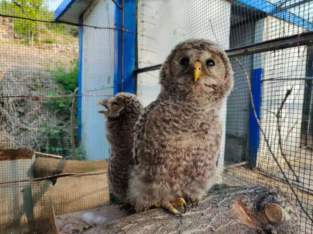 志愿者接到本溪市林业局野保站的来电,110接收的案件中涉及到两只猫头鹰的雏鸟,牠们急需救助。志愿者立刻驱车到现场,经过鉴定,这两只小猫头鹰为国家二级保护鸟类长尾林鸮。目前,两只鸟儿已被志愿者接回护鸟基地救治喂养,待野化训练后放归大自然。