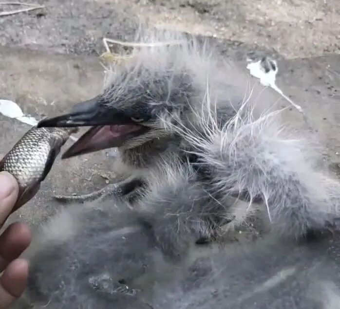 当天,本溪市遭遇了极端的大风天气。风后,志愿者来到了苍鹭繁殖地进行巡护,发现了一棵被大风刮倒的树,原先在树上筑着的鸟巢内有3只苍鹭雏鸟也不幸掉落了下来。饥寒交迫导致鸟儿状态不佳,志愿者便将3个小家伙带回了护鸟基地进行救治。