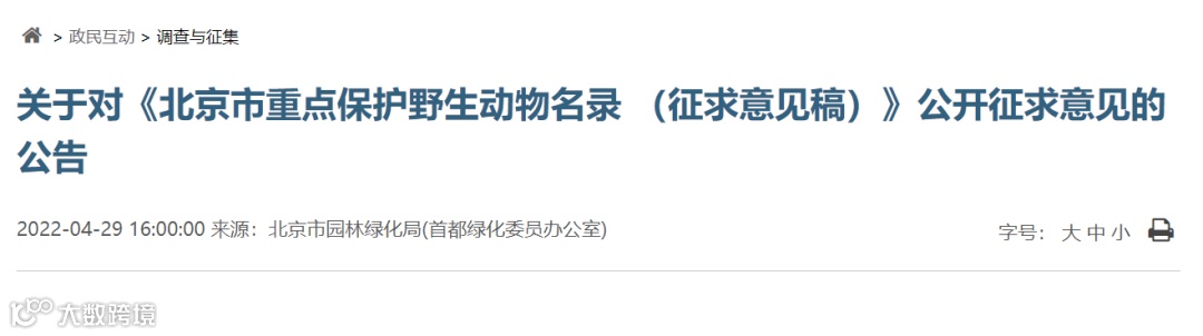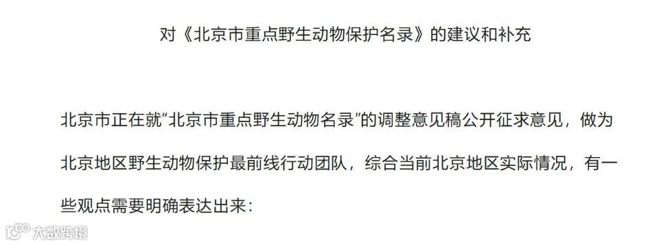 北京市公开征求“市重点保护野生动物名录”调整稿意见,我团队就一线保护工作总结提交了未包括进去的另外47个物种的意见文本并与市局取得“确认收到”信息。
