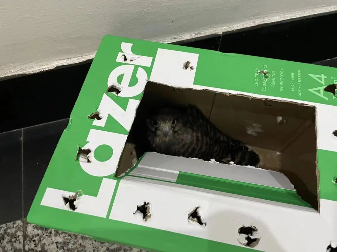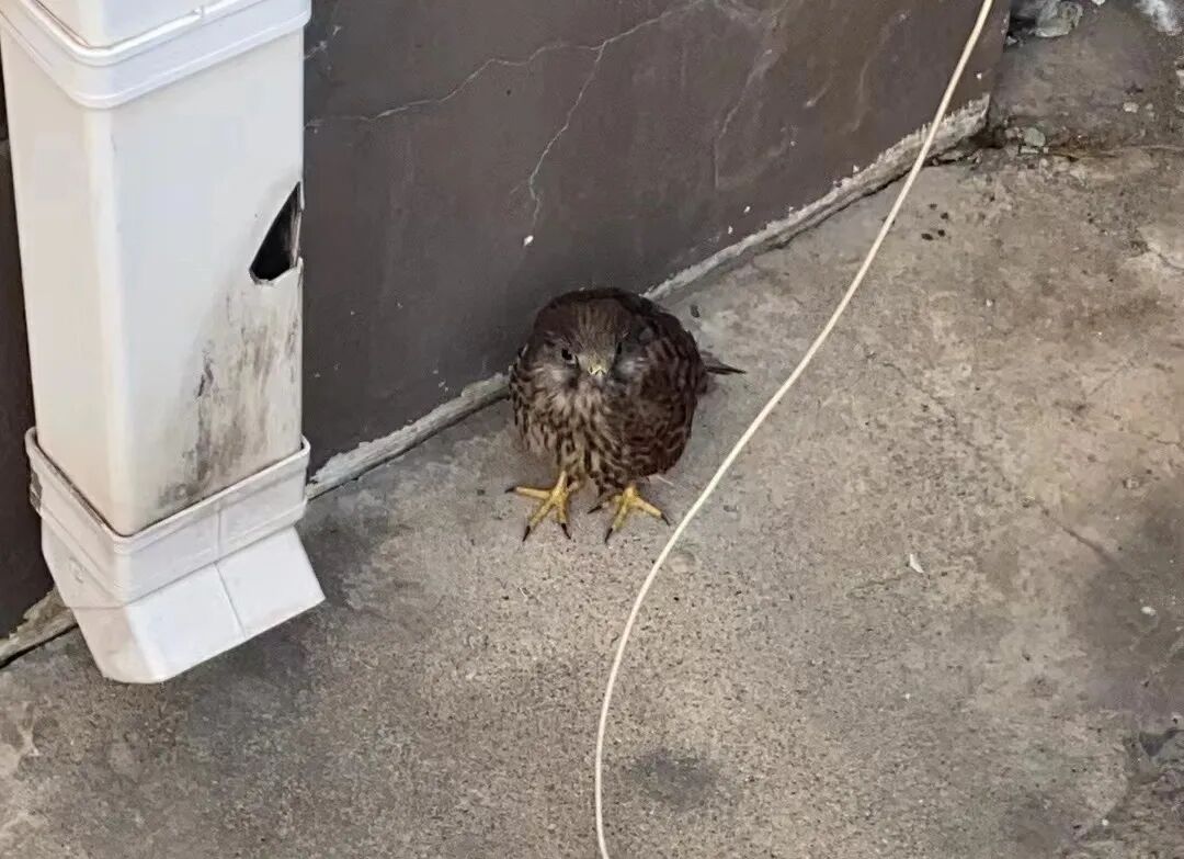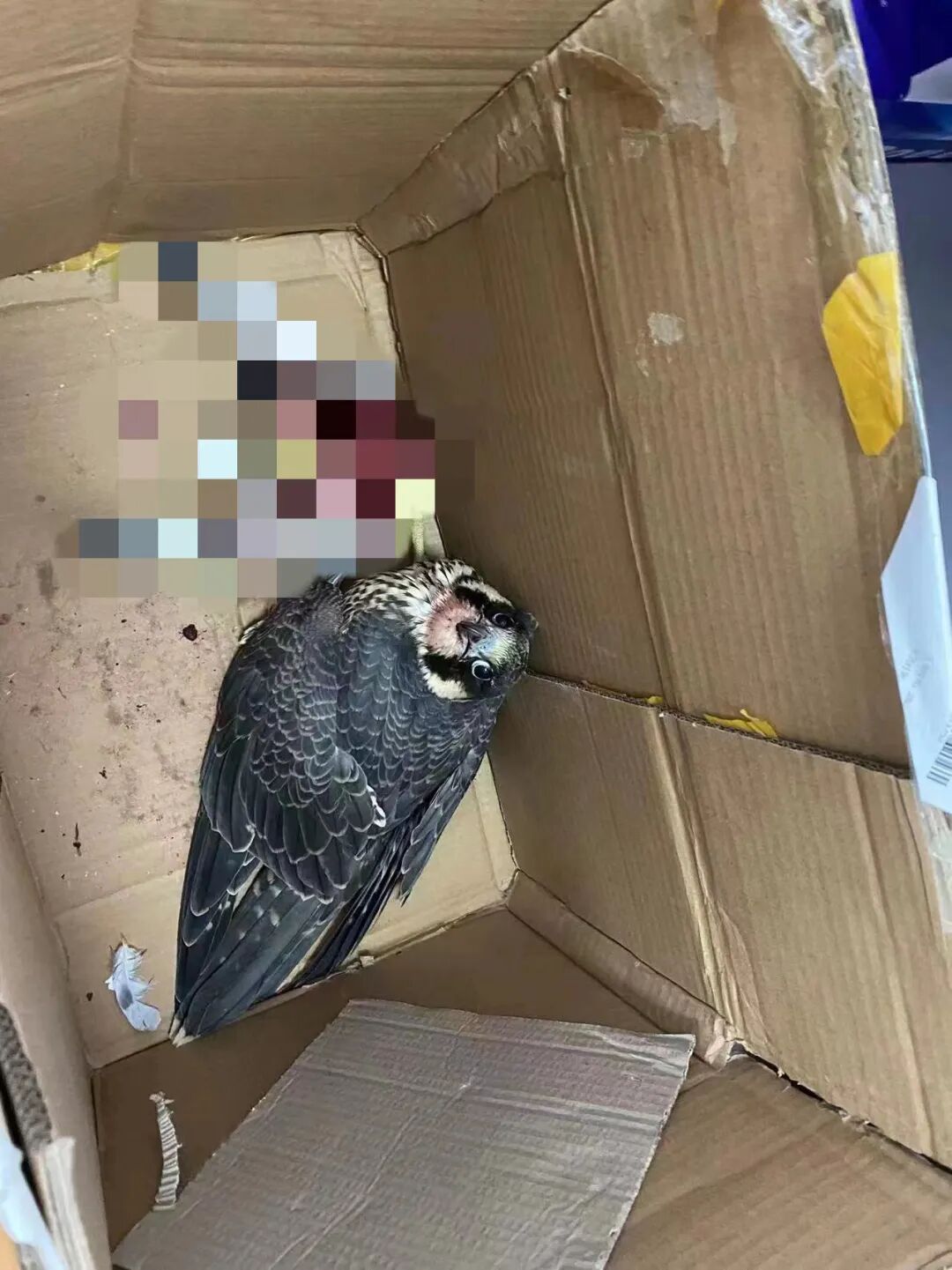 大连市甘井子区海燕街将一只翅膀受伤的国家二级保护鸟类燕隼运送至保护中心治疗养伤。