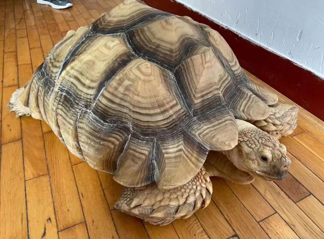 志愿者在当日还成功的将一只春柳市民弃养的苏卡达陆龟移交至市动物园。