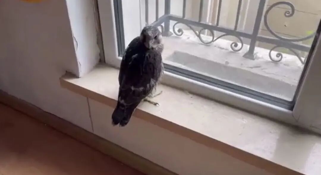 大连市人大常委会连先生将一只撞晕在玻璃上的游隼送往保护中心治疗休养。