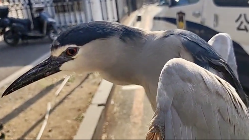 沈阳五三派出所发现1只夜鹭,志愿者接到求助信息后到达现场,平安救助夜鹭并放归大自然。