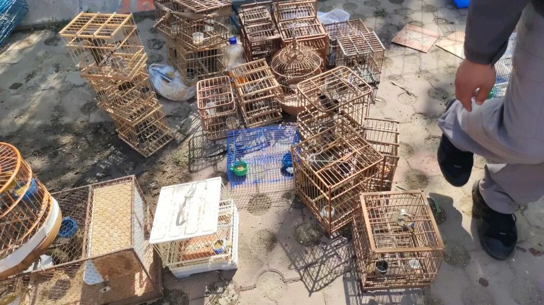 在非法鸟市中查缴的鸟笼等囚禁工具