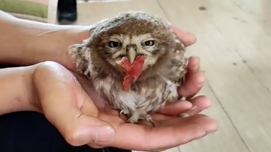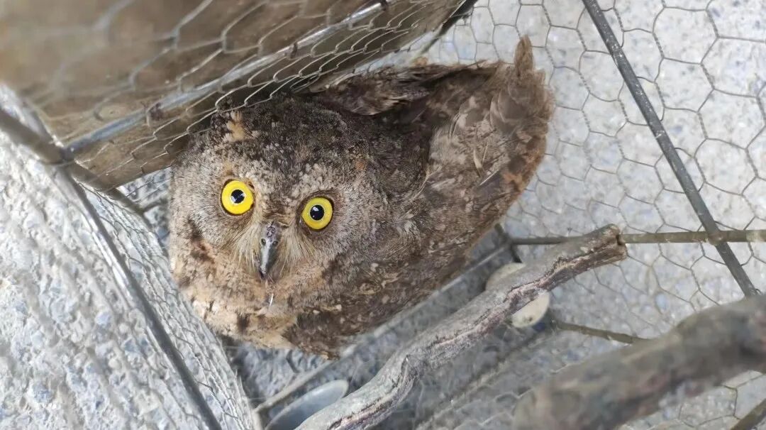 受伤的国家二级保护动物——红角鸮(东方角鸮)