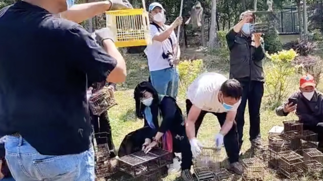 志愿者在沈阳沈北一山坡发现捕鸟网2张,报警并协助公安部门当场抓获2人;在沈北辽河边上一村庄附近协助执法人员抓获架网捕鸟者3人,目前所有嫌疑人均交由公安部门处理中。本次巡护行动共解救国家二级保护动物红胁绣眼鸟、黑尾蜡嘴雀鸟、普通朱雀等野生鸟类50余只,并已全部放归大自然。