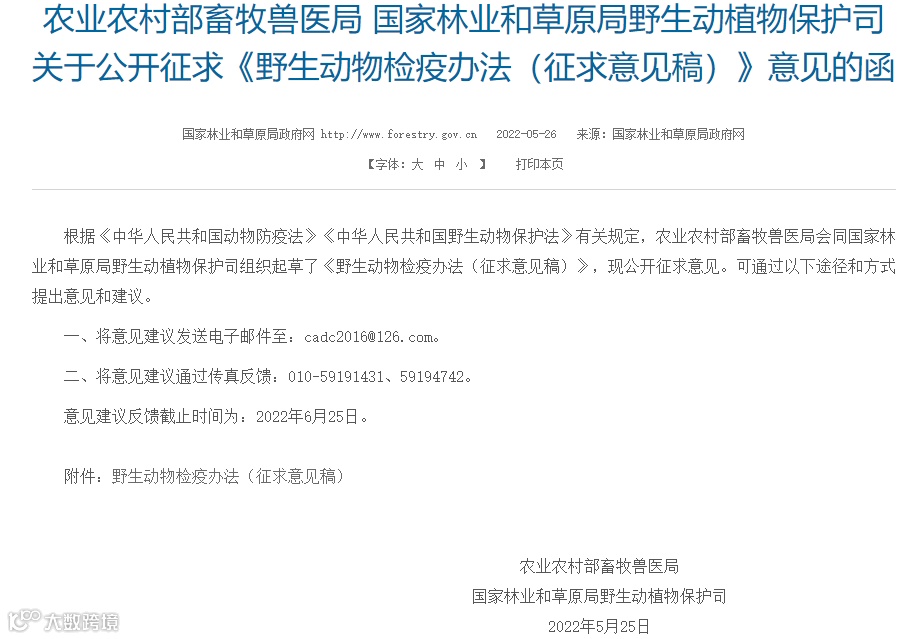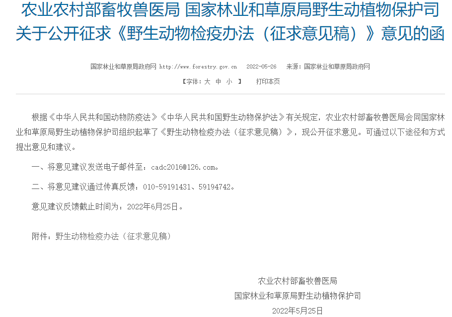 关于《野生动物检疫办法》您有什么意见建议或者想说的,欢迎留言探讨。我们将形成综合意见,一并提交。意见建议反馈截止时间为6月25日
