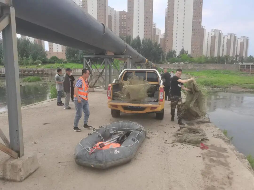 鞍山志愿者联合执法部门共同进行河道清网行动