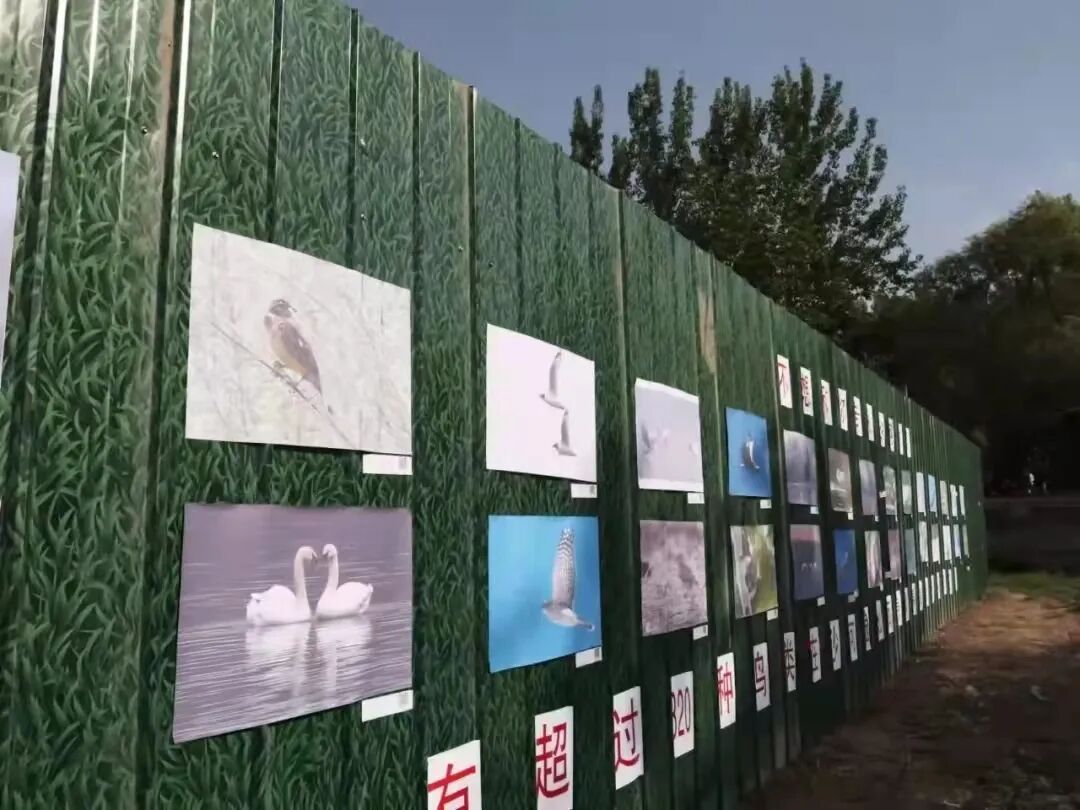 5月初,在沙河工地围板上的鸟类摄影展,希望主管部门看到沙河真正的生态地位。